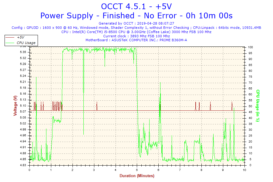 잘만 EcoMax 600W 83+ 5V 전원 테스트 사진입니다.