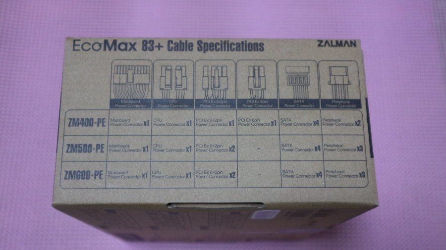 잘만 EcoMax 600W 83+ 박스 측면 사진입니다.
