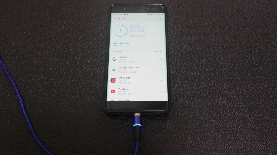 DGG USB 마그네틱 C타입 자석 고속충전케이블 2세대 스마트폰에 연결 후 올려봤습니다.