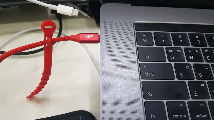 트윌 C타입 to C 60W PD 고속충전 케이블을 맥북 충전기에 연결했습니다.