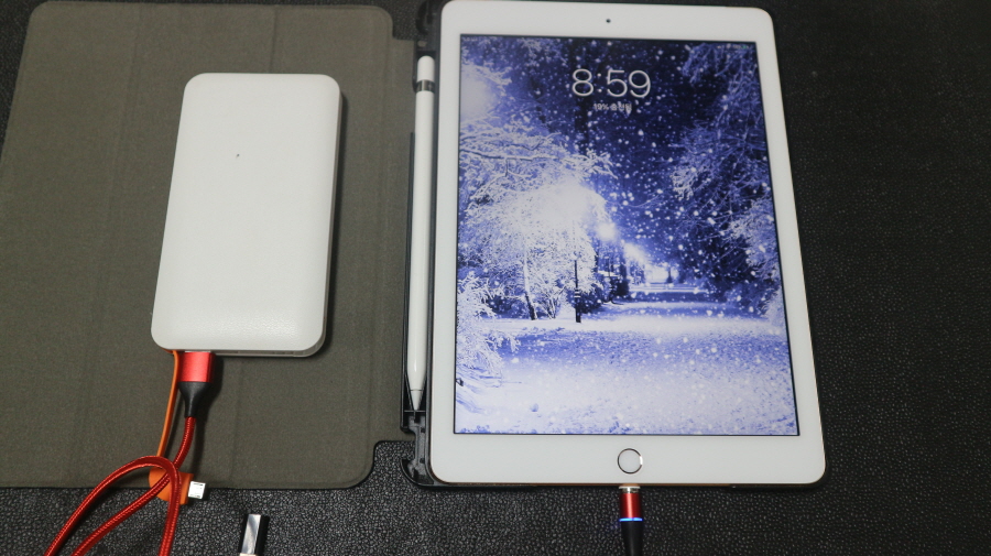 DGG 마그네틱 아이폰 8핀 자석 고속충전 케이블 2세대를 연결하고 아이패드를 들어봤습니다.