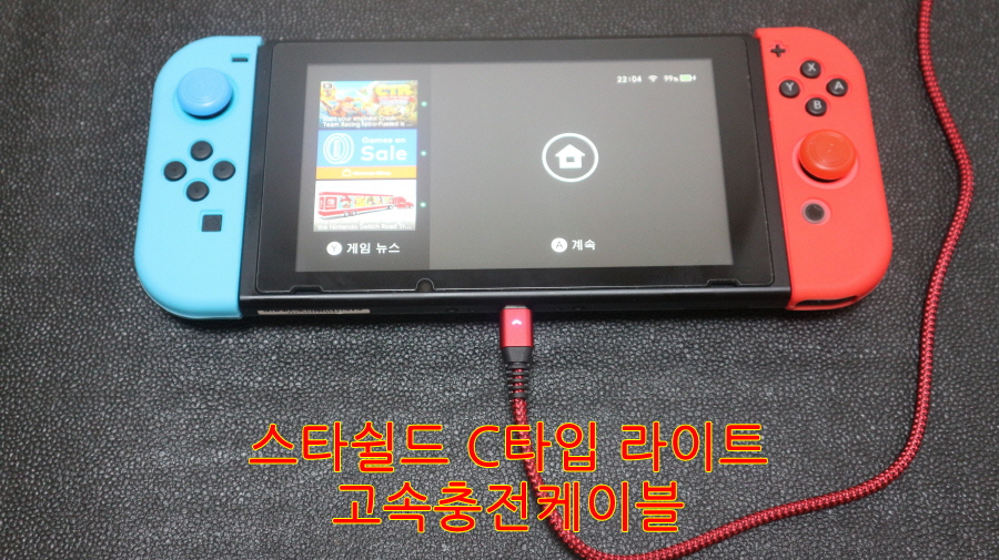 스타쉴드 C타입 라이트 고속충전케이블을 닌텐도 스위치에 연결했습니다.