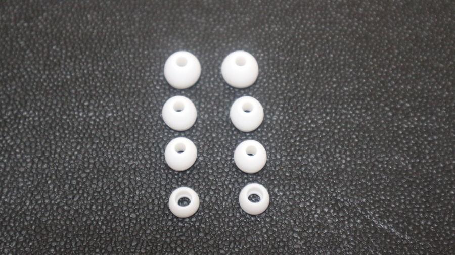 스피커 앞쪽이 마감 처리되어 있고, 이어 팁은 교체하기 편하게 되어 있습니다.