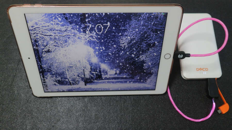 디씨네트워크 LED 고속충전 아이폰 케이블을 아이패드에 연결했습니다.