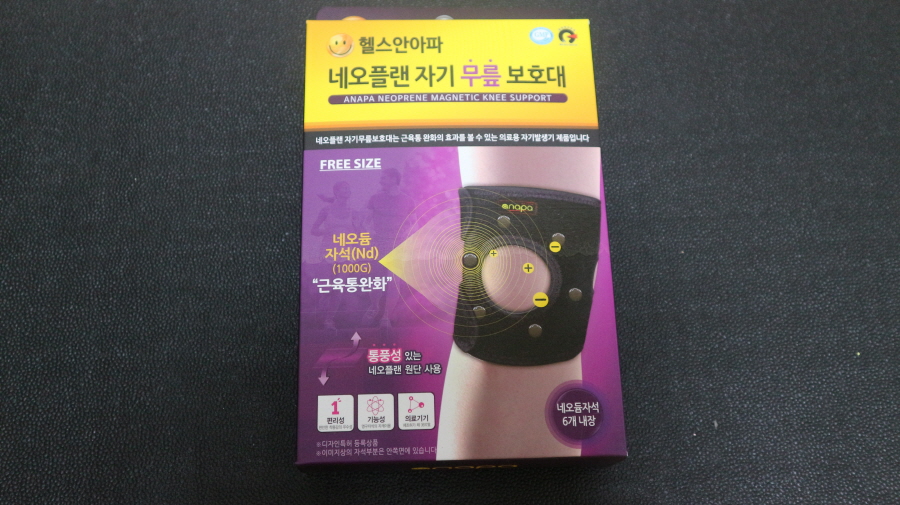 헬스안아파 네오플랜 자기 무릎보호대는 의료기기 인증 제품으로 근육 통증 완화 효과가 있다고 합니다.