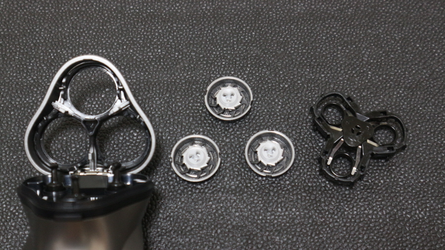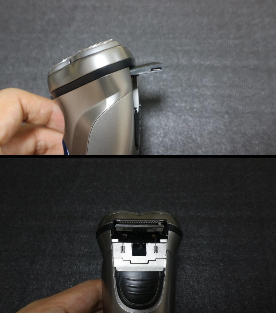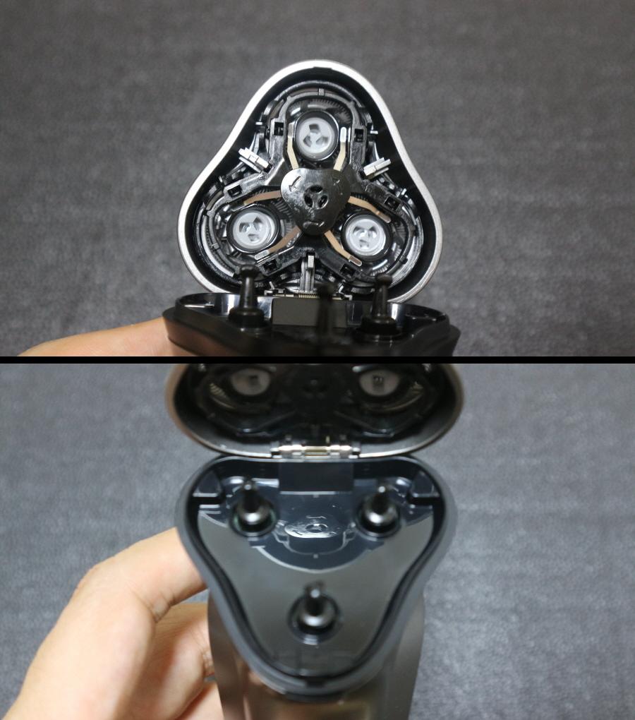 티피오스 남자 전동 전기면도기 더맨 세컨드는 헤더 부분에 있는 중앙 버튼을 돌려주면 3개의 칼날이 분리됩니다.