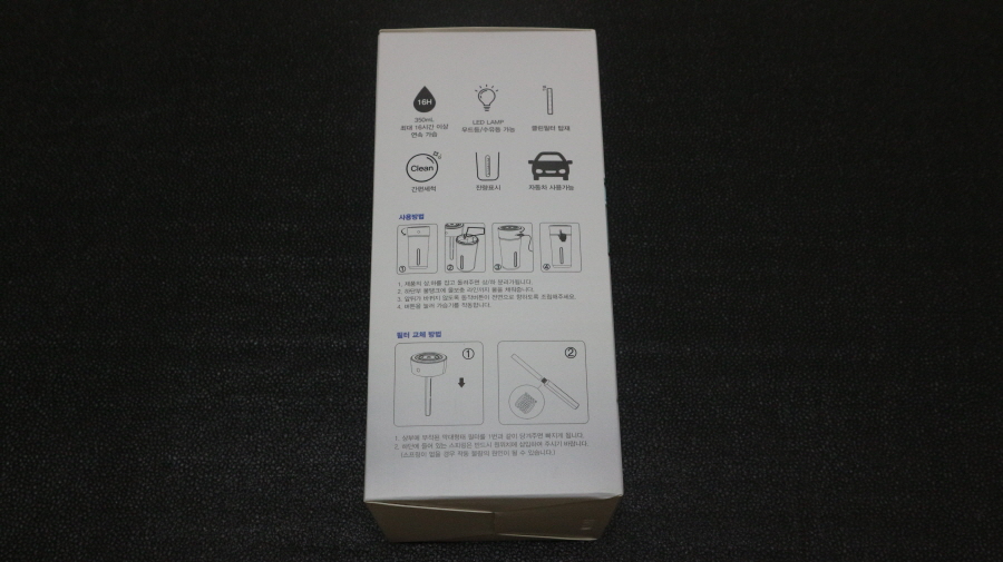 한경희 미니 텀블러 가습기 HTM-350C을 박스 후면 사진입니다.