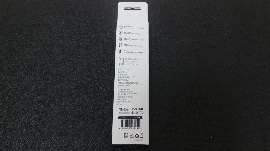 요이치 글로우 조명 LED 블루투스 셀카봉 박스 후면 사진입니다.