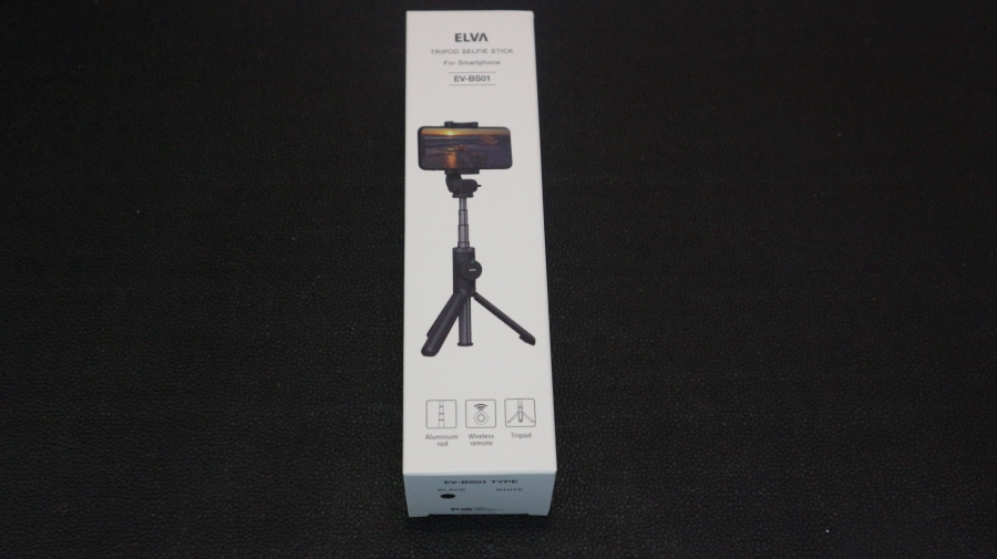 EV-BS01 삼각대 블루투스 셀카봉 박스 전면 사진입니다.