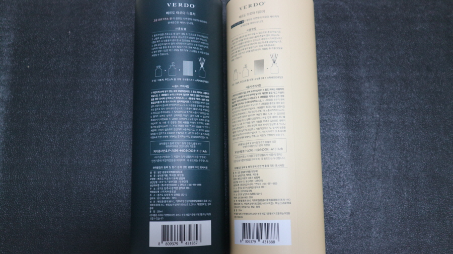 베르도 니치 아로마 디퓨저 방향제는 박스 후면 사진입니다.