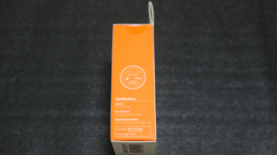 슈피겐 스터디부스트 USB PD 차량용 고속충전기 F31QC 박스 측면 사진입니다.