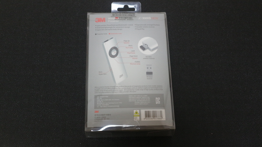 3M 무선 프리젠터 JC-3000S NEW 박스 후면 사진입니다.