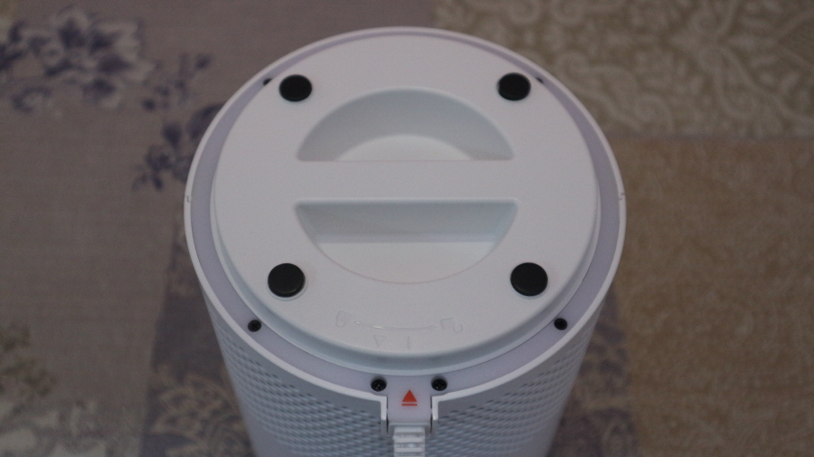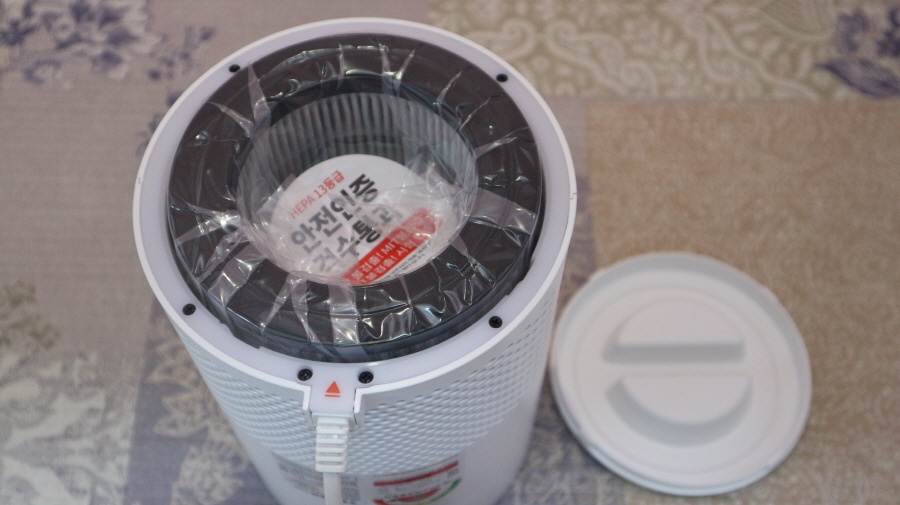 하단 에어홀에서 흡입된 공기는 필터를 통해서 상단 넓은 원형 판을 통해 정화된 공기가 배출됩니다.