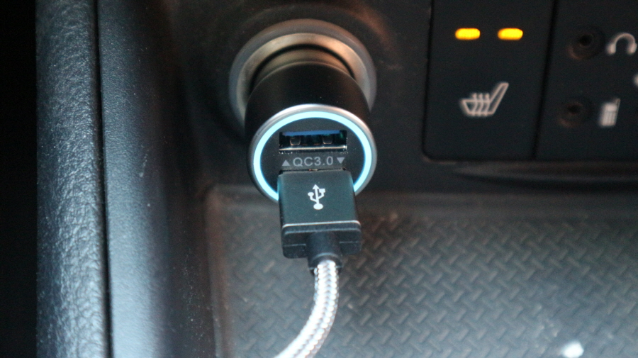 요이치 비숍 차량용 시거잭을 차에 연결했습니다.