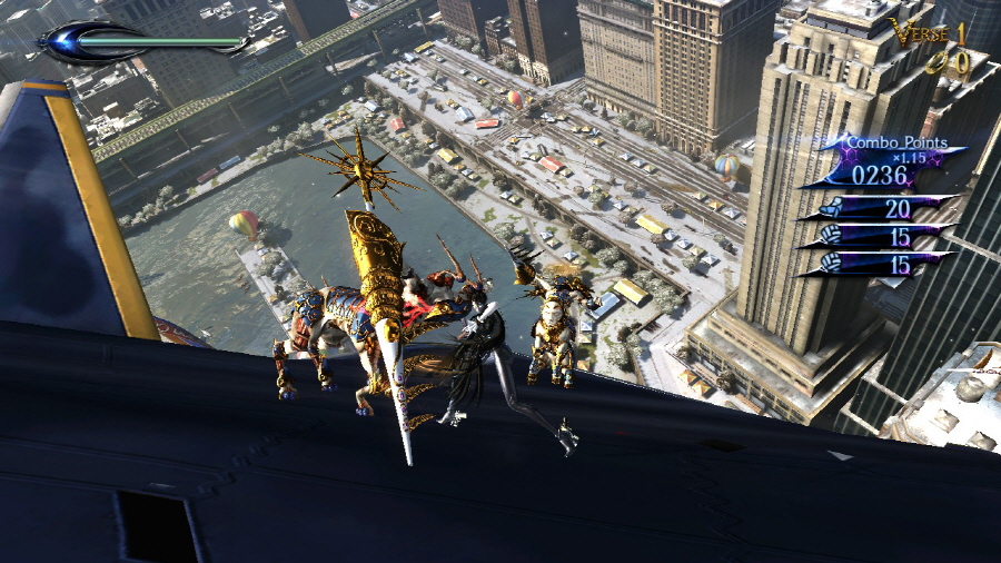 스위치 베요네타2 액션은 전작과 동일하게 무한 콤보 형태로 진행됩니다.