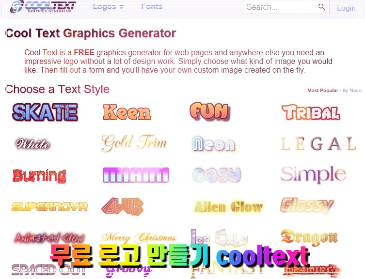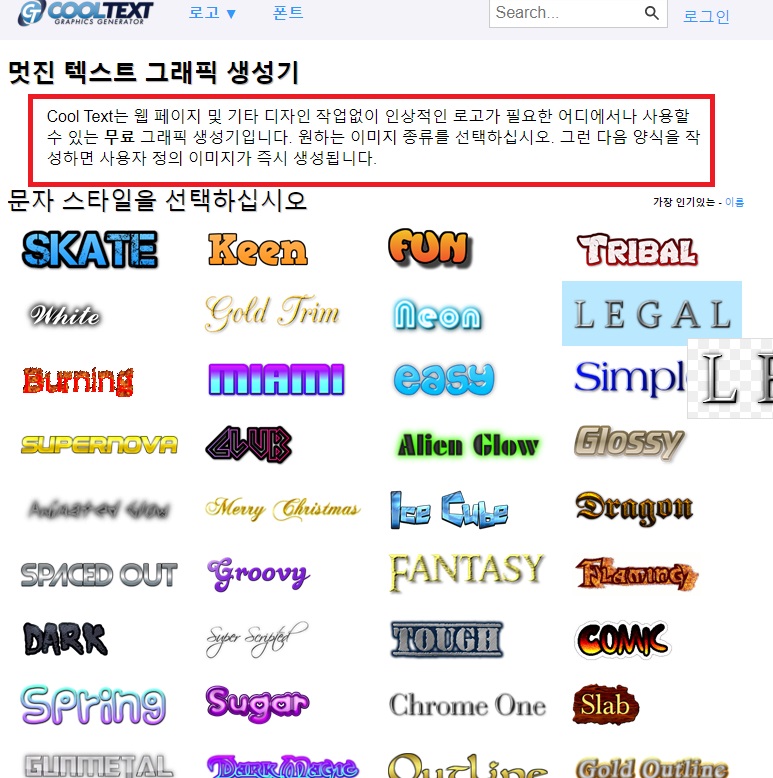 cooltext는 다양한 로고 디자인 및 폰트를 지원합니다.