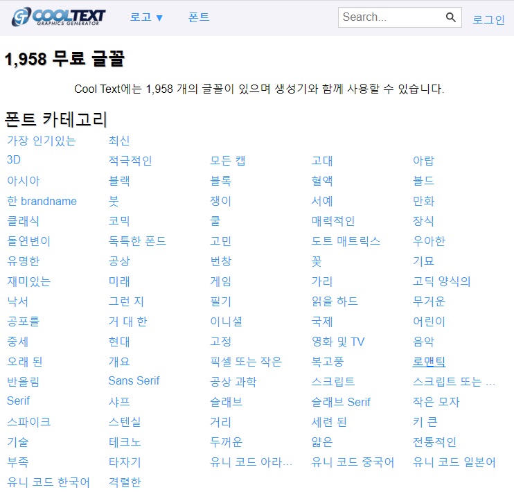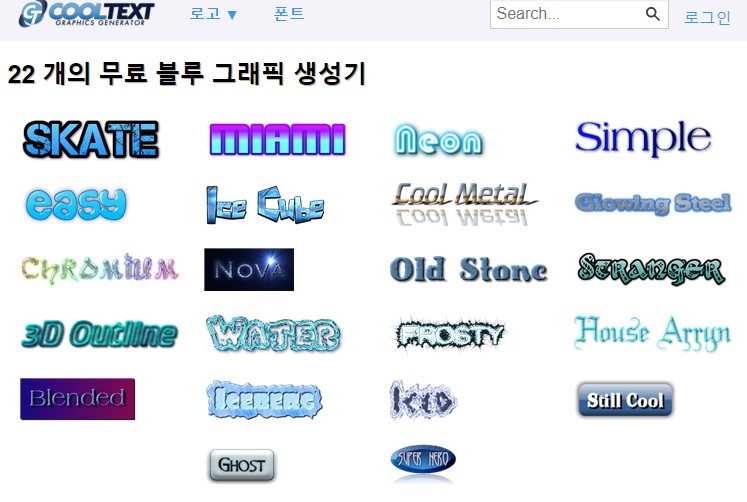 cooltext는 다양한 폰트 스타일을 선택할 수 있습니다.