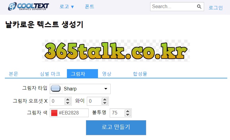 cooltext는 로고 대부분에 그림자 기능을 넣을 수 있습니다.