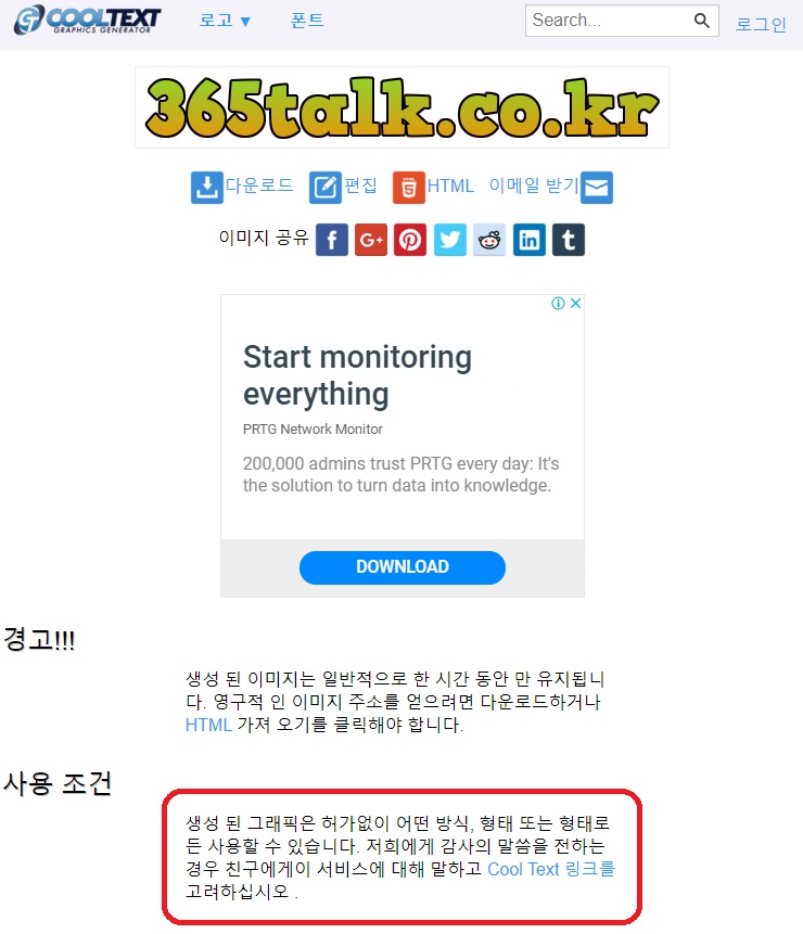 cooltext에 있는 다양한 로고를 사용해서 홈페이지 주소 로고를 만들어 보았습니다.