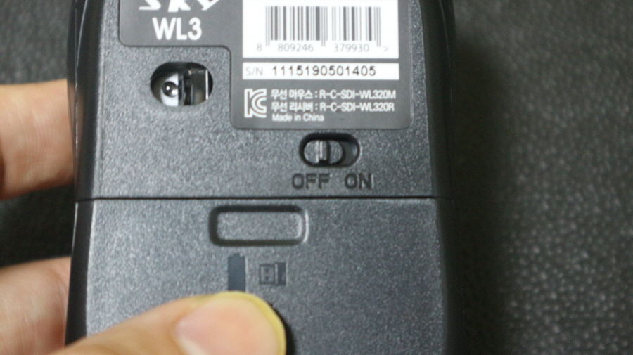 무소음 듀얼지원 스카이디지탈 WL3 무선 마우스 하단 사진입니다.