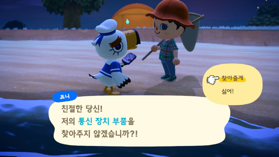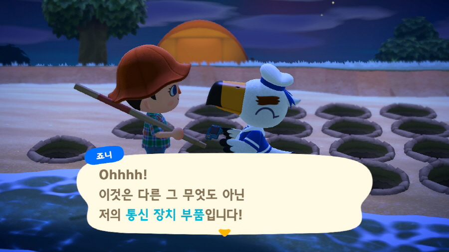 모여봐요 동물의 숲 죠니 퀘스트에 필요한 통신 장치 부품을 찾을 수 있었습니다.