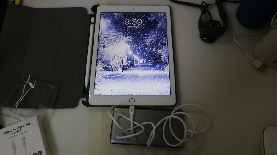 아이노트 FS-PDCX 애플 MFI 공식인증 C TO 라이트닝 고속 충전 케이블을 아이패드에 연결했습니다.