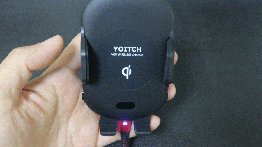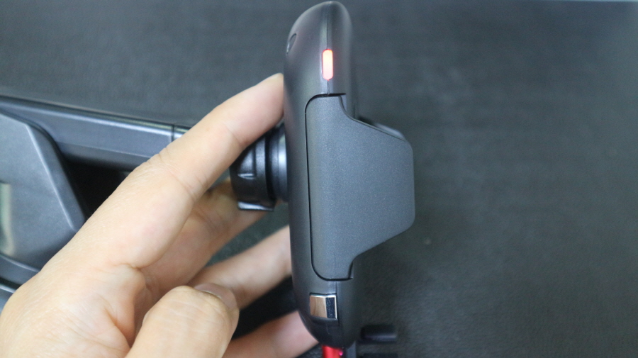 808 2세대 차량용 고속 무선충전 거치대에 전원을 연결하면 적색 LED가 점등됩니다.