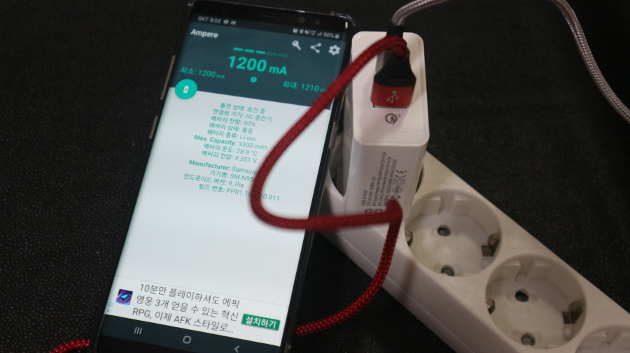 808 2세대 USB 2IN1 고속 PD 충전기 PUDDING 퀵 차지 3.0 연결 시 앱으로 배터리 충전 상태를 확인했습니다.