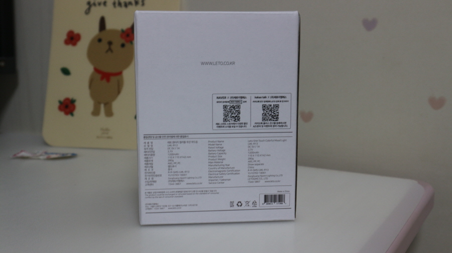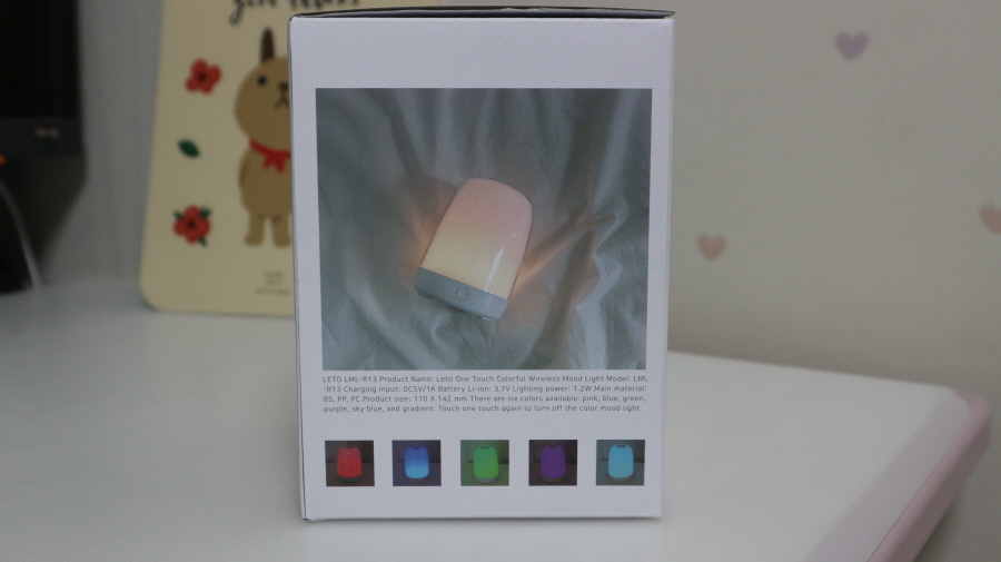 레토 프리미엄 무선 원터치 컬러풀 LED 무드등 LML-R13 박스 측면 사진입니다.