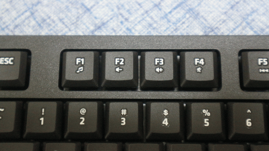 상단에 펑션 키로 사용할 수 있는 12개의 멀티미디어 키가 적용되어 있어 Windows 사용 시 매우 편리합니다.