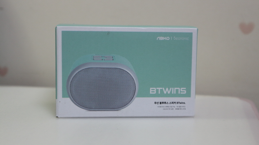 러블리한 미니 앱코 비토닉 BTwins 블루투스스피커 박스 전면 사진입니다.