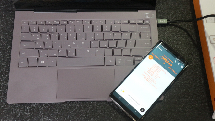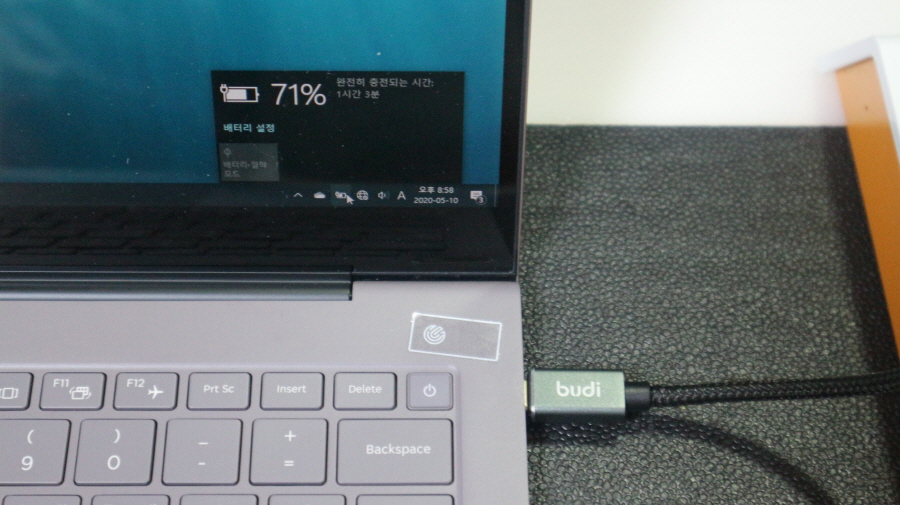 budi USB3.0 5G 60W PD 갤럭시 고속 충전 케이블 TYPE C 케이블을 사용해서 갤럭시 북 S를 연결했습니다.