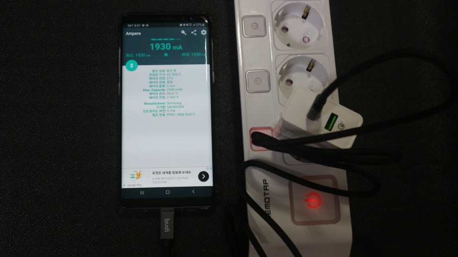 budi USB3.0 5G 60W PD 갤럭시 고속 충전 케이블 TYPE C 연결 후 배터리 앱을 사용해서 측정했습니다.