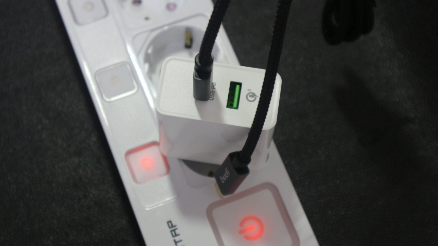 budi USB3.0 5G 60W PD 갤럭시 고속 충전 케이블 TYPE C를 PD 충전기에 연결했습니다.