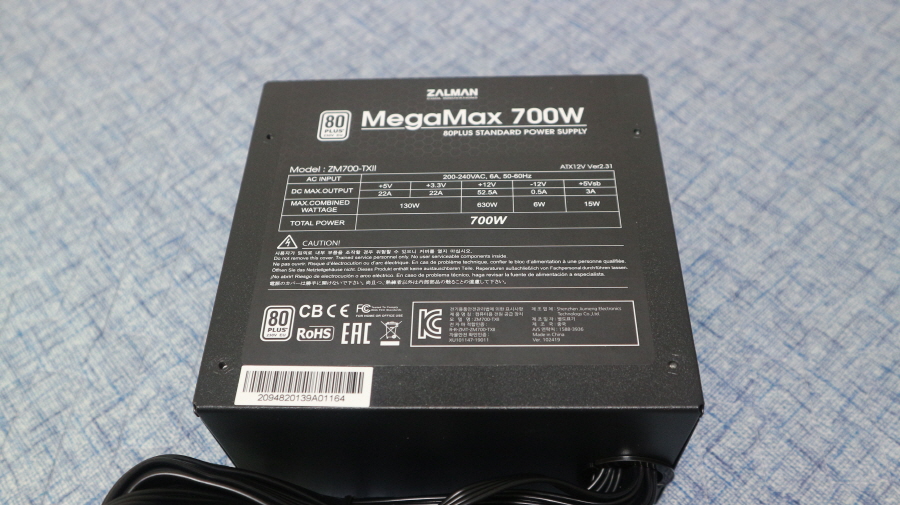 잘만 MegaMax 700W 80PLUS STANDARD 파워 하단 사진입니다.