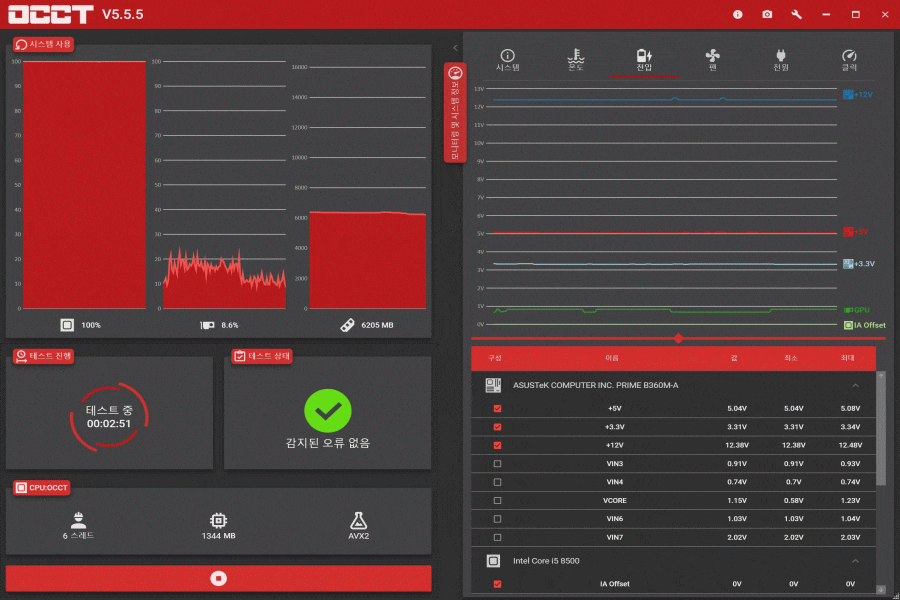 하드웨어 사양에 따라서 다르겠지만, 테스트 결과 안정적인 전원 사용을 확인할 수 있습니다.