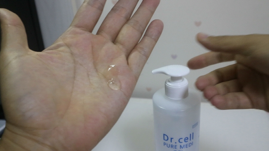 메디셀 닥터셀 퓨어메디겔 손소독제는 한번 펌핑에 적당한 양이 분사됩니다.