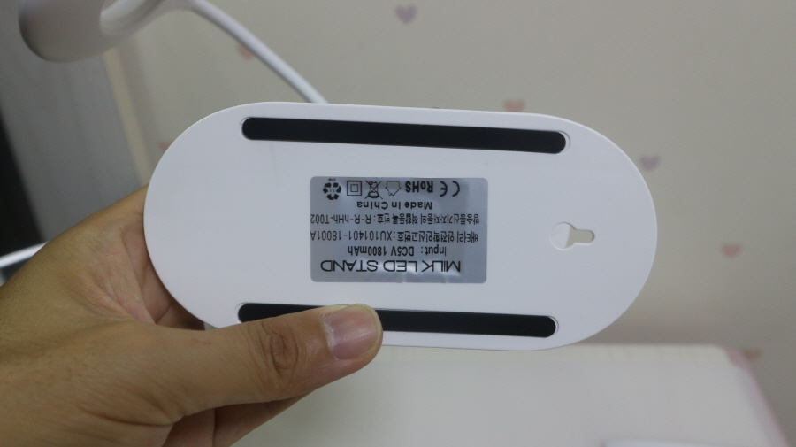 에이치앤오 밀크 LED 무선 집게 스탠드 MS-1 측면에는 충전 케이블을 연결할 수 있습니다.