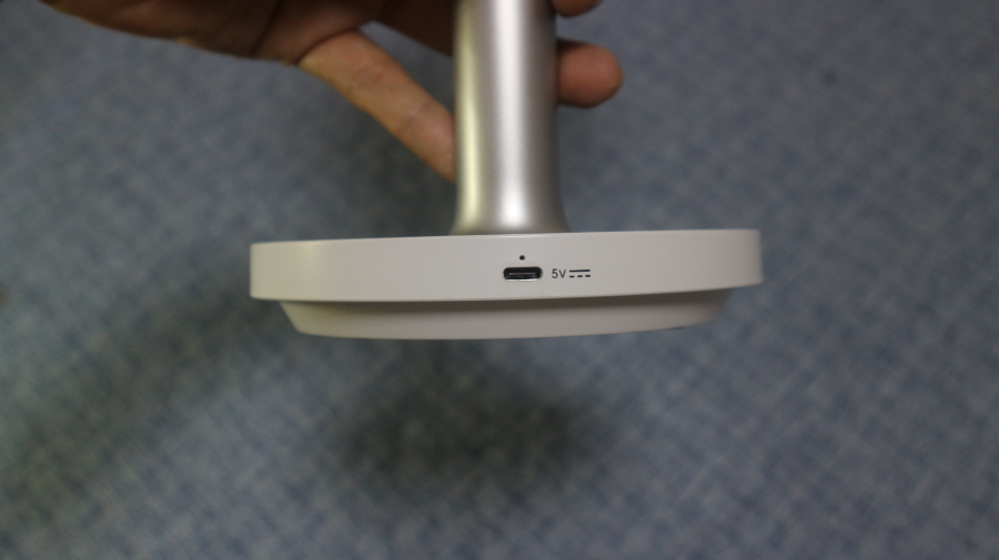 4개의 미끄럼 방지 패드가 있어 움직임을 최소화하였고, 원형 테두리 아래쪽에 LED가 있습니다.