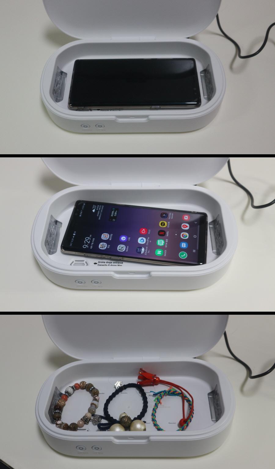 스마트폰 경우 고속 무선 충전을 지원해서 UV 살균과 동시에 충전이 가능합니다.