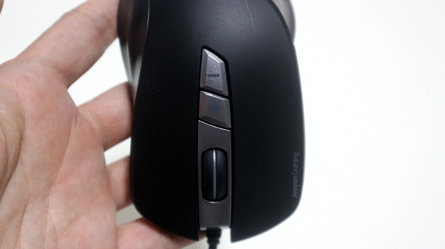 상단에는 스크롤 휠 및 중간 버튼, DPI 증가, DPI 감소 버튼이 있습니다.
