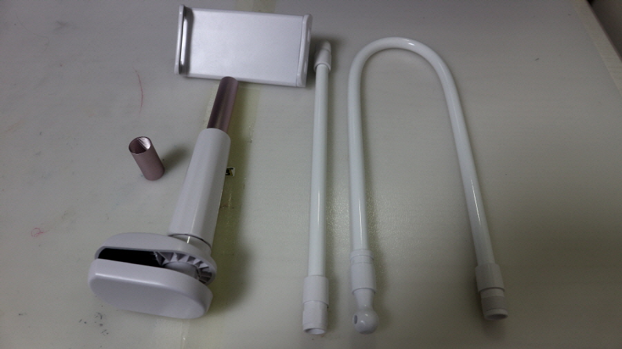 레토 자바라 스마트폰 거치대 LBZ-H01 구성품은 클립프, 홀더, 기본 와이어, 연장 와이어, 연장 와이어 연결부로 되어 있습니다.