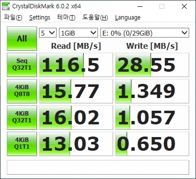 실리콘파워 BLAZE B20 (32GB) USB 메모리 데이터 속도 측정 사진입니다.