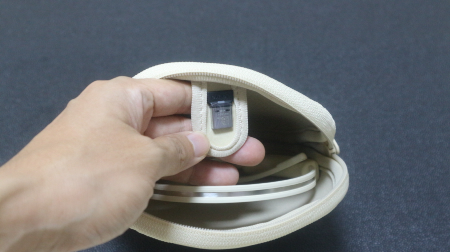 파우치 안쪽에는 어댑터 보관함이 따로 있습니다.