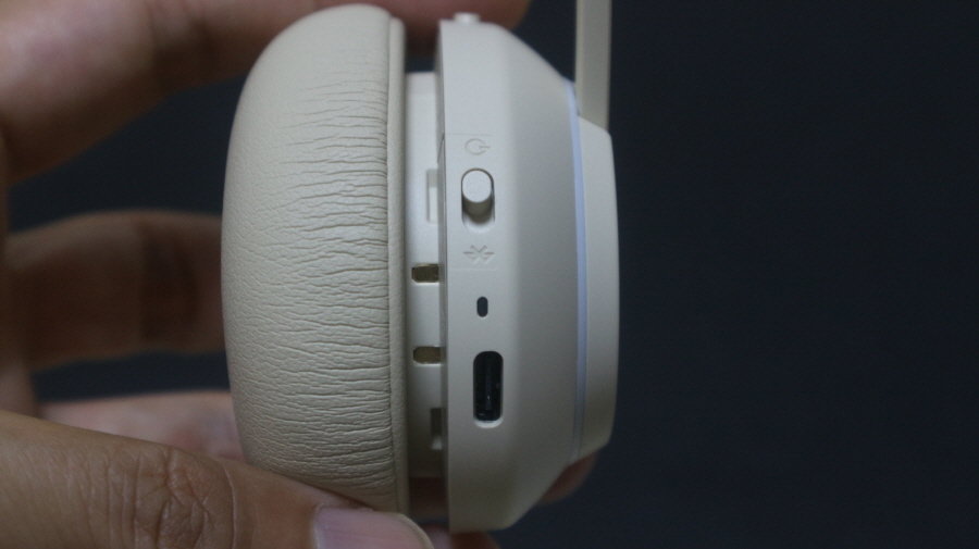 아래쪽에는 전원 및 블루투스 페어링 조절 버튼이 있습니다.