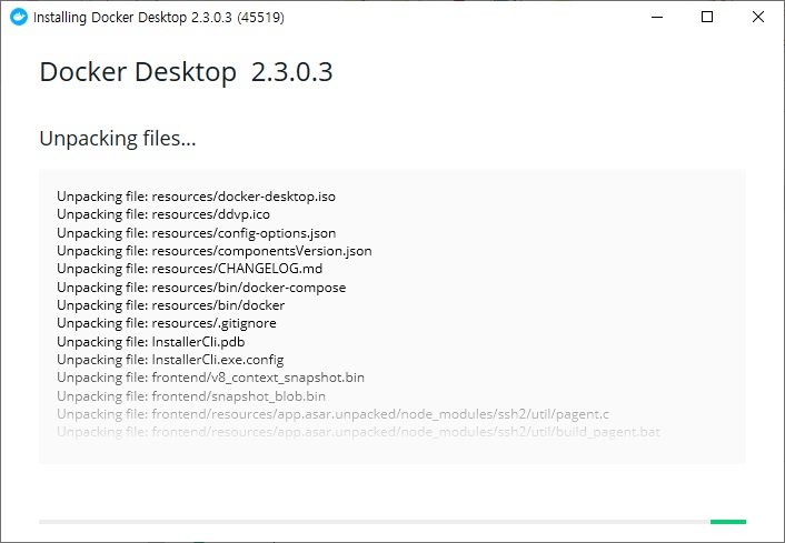 언 패킹되면서 Docker가 설치됩니다.