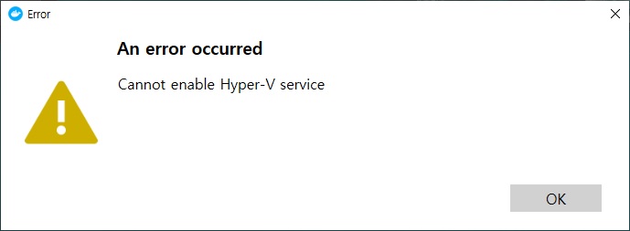 설정 후 Docker 실행 시 "Cannot enable Hyper-V service"가 계속 출력된다면 정상적으로 Hyper-v가 실행 안된 상태입니다.
