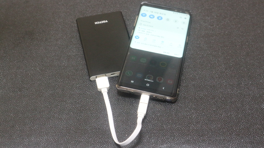 마이크로 5핀을 사용해서 충전이 가능하고, C 타입 젠더가 포함되어