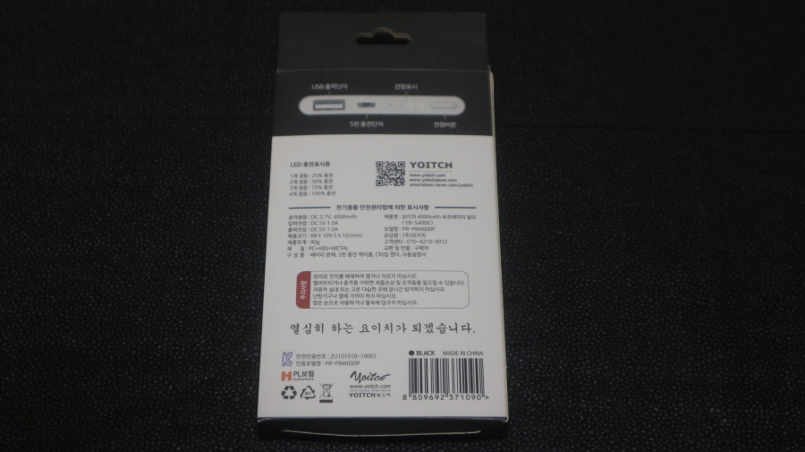 4000mAh보조배터리 C타입젠더 5핀케이블 리튬폴리머배터리 안전한보조배터리 작고가벼운배터리
