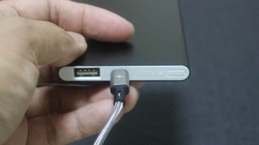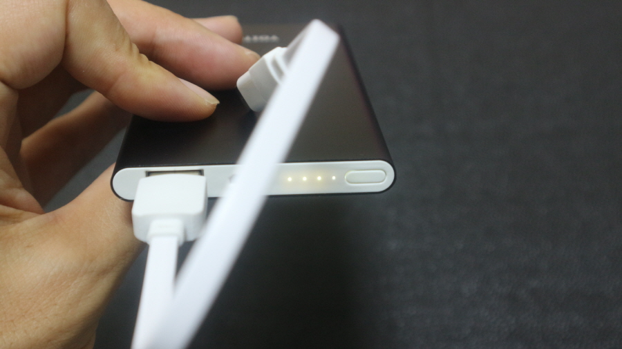 보조 배터리를 충전하기 위해서 전원을 연결하면 LED가 깜빡입니다.